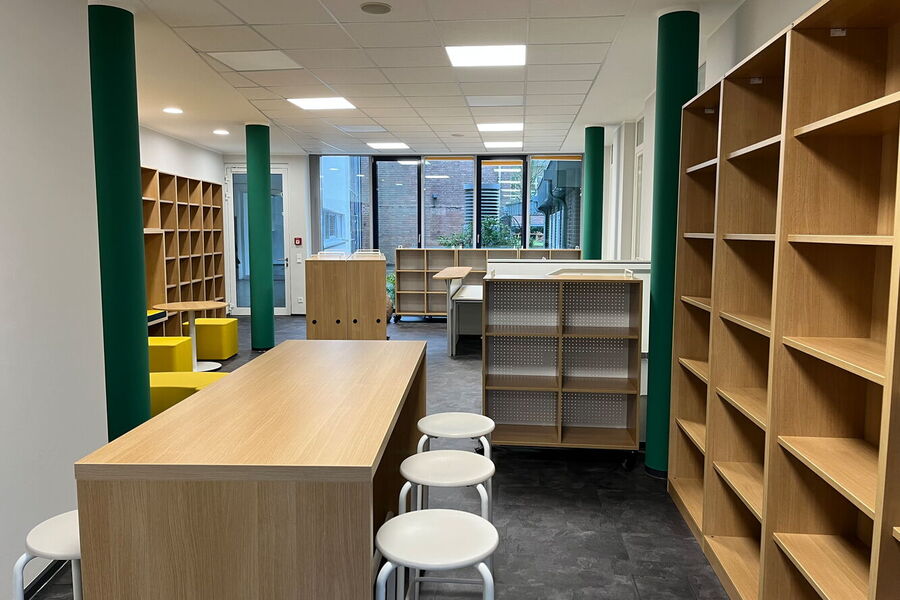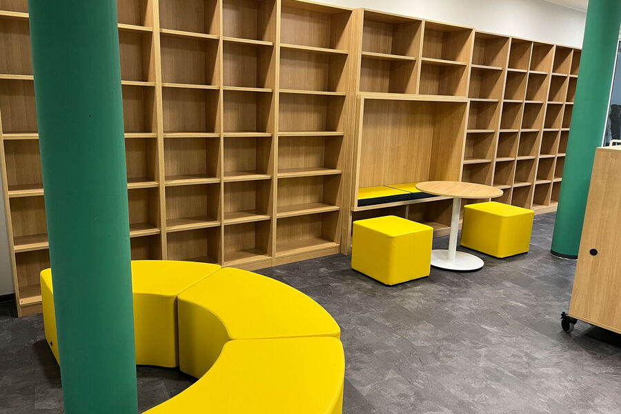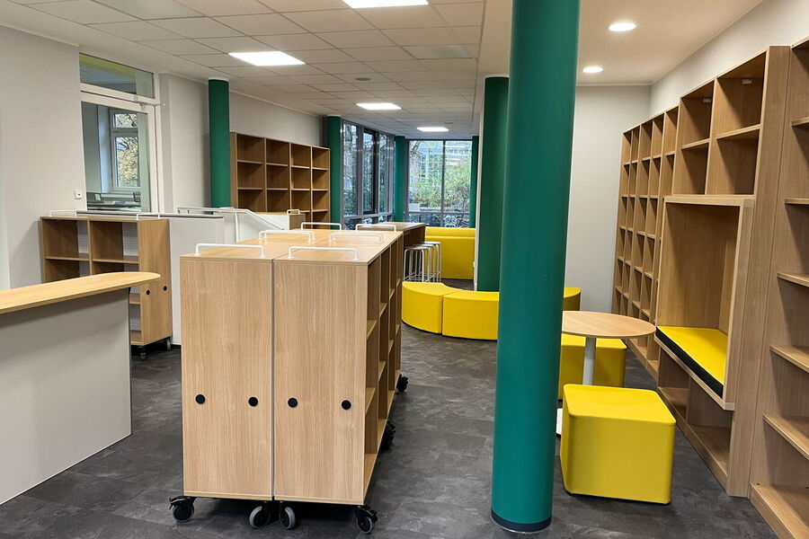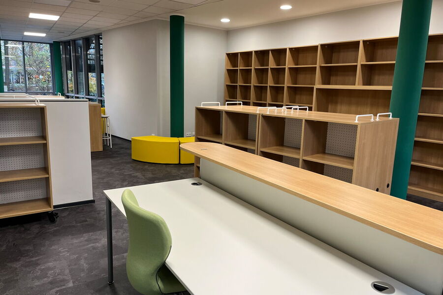 Hier entsteht unser neues Medien- und Lernzentrum. Noch im Aufbau, wird das LernQuartier künftig ein Ort zum Stöbern, Arbeiten und Entdecken sein – mit modernen Möglichkeiten für gemeinsames Lernen und kreative Projekte.