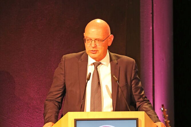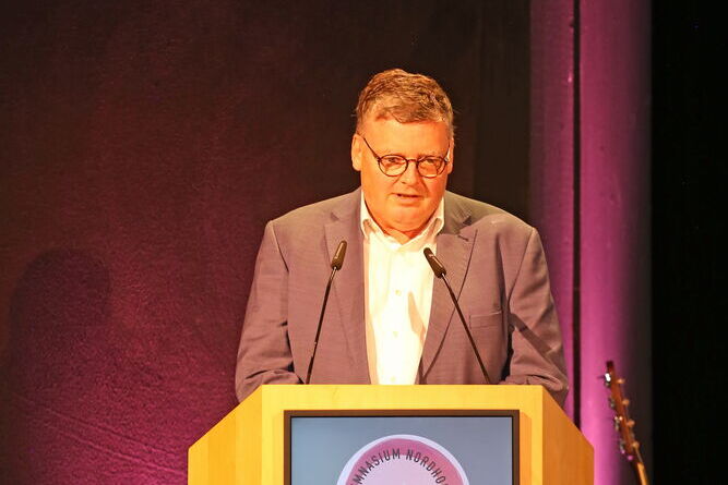 Bürgermeister Thomas Berling betonte die enge Verbundenheit zwischen Stadt und Schule. Er erinnerte an die Anfänge im Gemeindehaus Frensdorf und an den stetigen Ausbau zu einer Bildungseinrichtung mit überregionaler Ausstrahlung. Als Europaschule pflege das Gymnasium Nordhorn internationale Kontakte und sei seit Jahrzehnten kulturell wie gesellschaftlich ein aktiver Mitgestalter. Besonders würdigte er die enge Zusammenarbeit mit der Musikschule und den städtischen Kultureinrichtungen – ein Zusammenspiel, das Talente sichtbar mache und die kulturelle Bildung stärke.