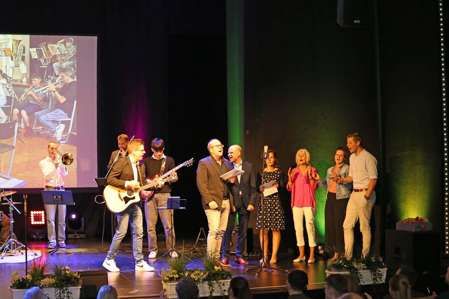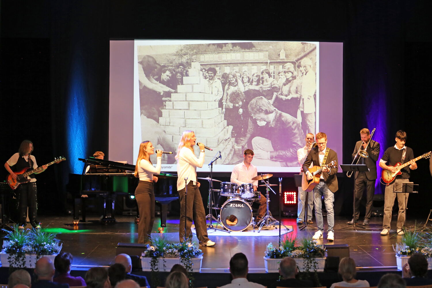 Den musikalischen Schlusspunkt des Festakts setzte ein eigens für das Jubiläum komponiertes Lied, vorgetragen von Schülern zusammen mit der Schulband und Lehrkräften. Es war ein bewegender Moment, der die große Verbundenheit mit der Schule noch einmal eindrucksvoll hör- und spürbar machte.