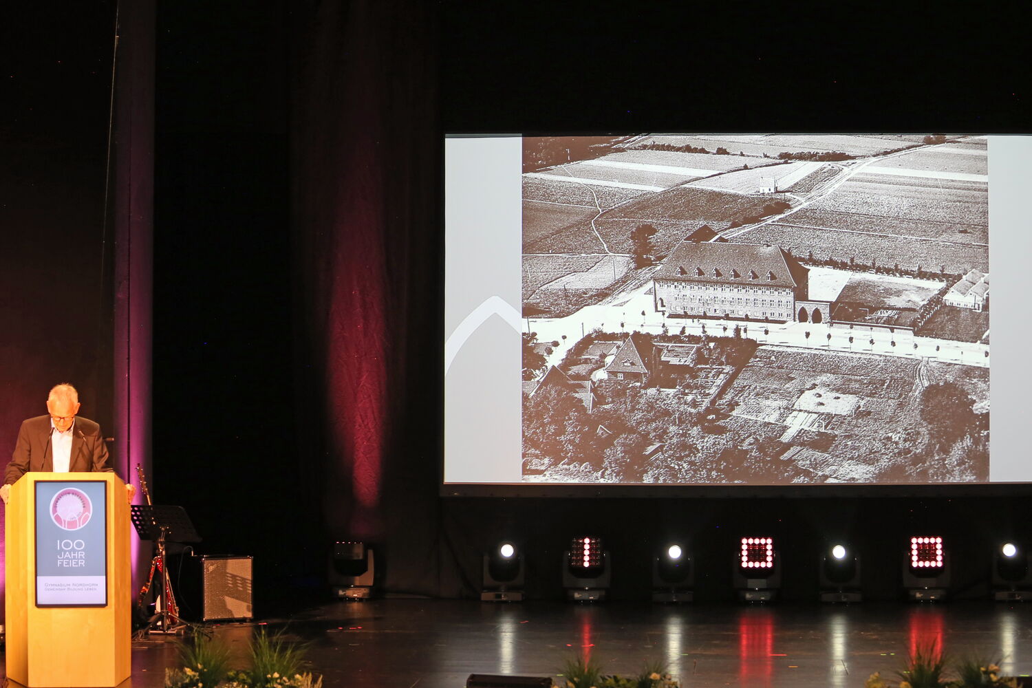 Eine weitere bewegende Stimme war Horst-Günther Stacharowsky (Abiturjahrgang 1950), der seinem damaligen Englischlehrer posthum dafür dankte, dass dieser ihnen zur Hochzeit des totalitären Regimes beigebracht habe, was Demokratie ist; Worte, die das Publikum sichtlich berührten.