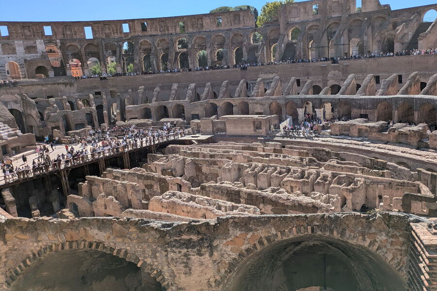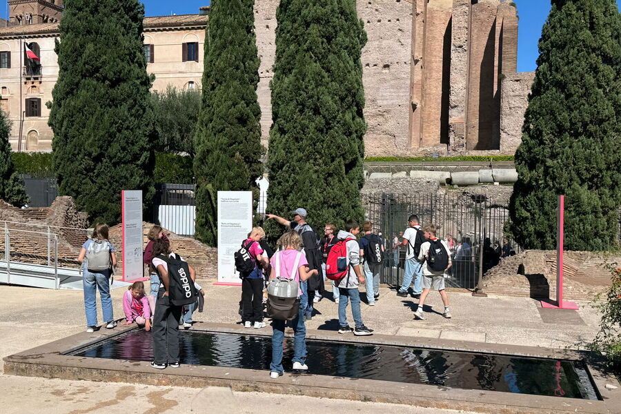 Am Folgetag stand das Kolosseum auf dem Programm. Die Schüler*innen waren beeindruckt von der Größe des Bauwerks und lernten, dass hier einst Gladiatoren kämpften, Tiere brüllten und das Volk jubelte. Besonders spannend: das Forum Romanum, wo Geschichte plötzlich ganz nah war. Zwischen Tempelresten und Kopfsteinpflaster spürte man fast den Atem der Antike. Hier wurde Weltgeschichte geschrieben – und wir waren mittendrin. „Hier laufen wir durch die Geschichte, ohne es zu merken“, witzelte ein Kollege und verwies auf das „Tor der Juden“, ein Symbol der Integration und gleichzeitigen Abgrenzung. Für uns heute ist es ein kleines, aber spannendes Zeugnis davon, wie vielfältig Rom schon vor Jahrhunderten war.