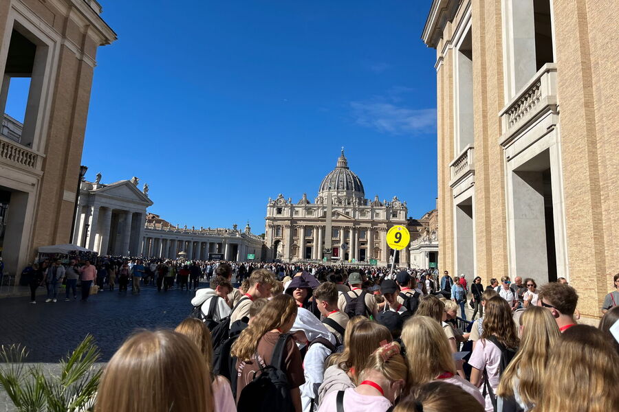 Einige Oberstufenschüler*innen wagten sich danach noch in die Vatikanischen Museen und bestaunten Michelangelos Sixtinische Kapelle. Da 2025 ein Heiliges Jahr ist, waren auch die Museen dermaßen von Touristen überfüllt, dass man in langen Warteschlangen genug Zeit hatte, um sein Smartphone mit Fotos von Deckenmalerei zu überfluten und darüber nachzudenken, wie man denn über Kopf am besten malen könne.