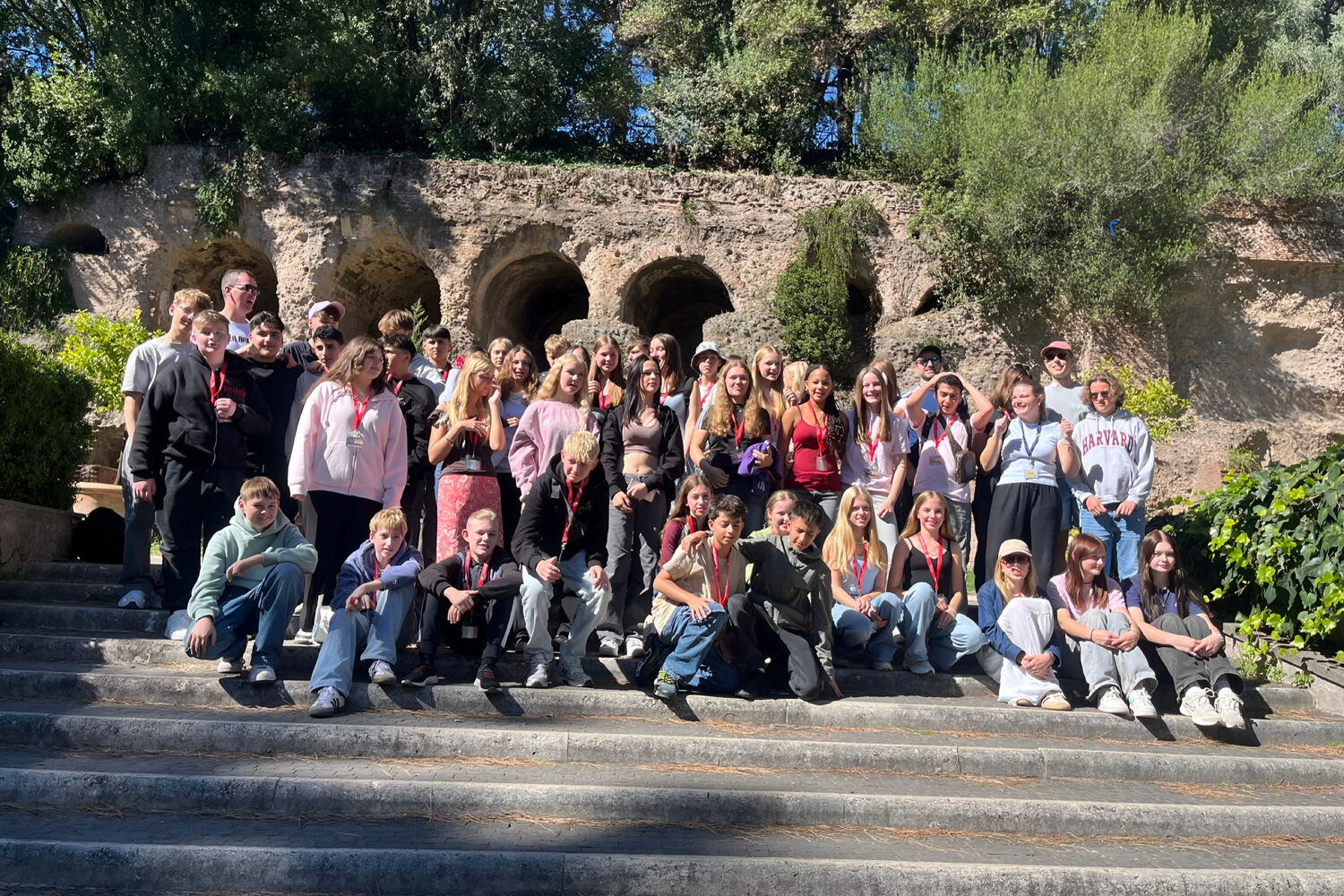 Am letzten Tag durfte jede Busgruppe selbst entscheiden, wie sie ihn gestalten wollte: Die jüngeren Klassen blieben im Camp, veranstalteten Musik- und Sportturniere, während andere die Villa d’Este in Tivoli mit ihren beeindruckenden Wasserspielen erkundeten. Die Oberstufe zog es Richtung Strand nach Ostia und anschließend zu einem Stadtbummel nach Rom. Ein Tag voller Sonne, Meeresrauschen und Gelato – nicht die schlechteste Art, eine Schulwoche zu beenden.