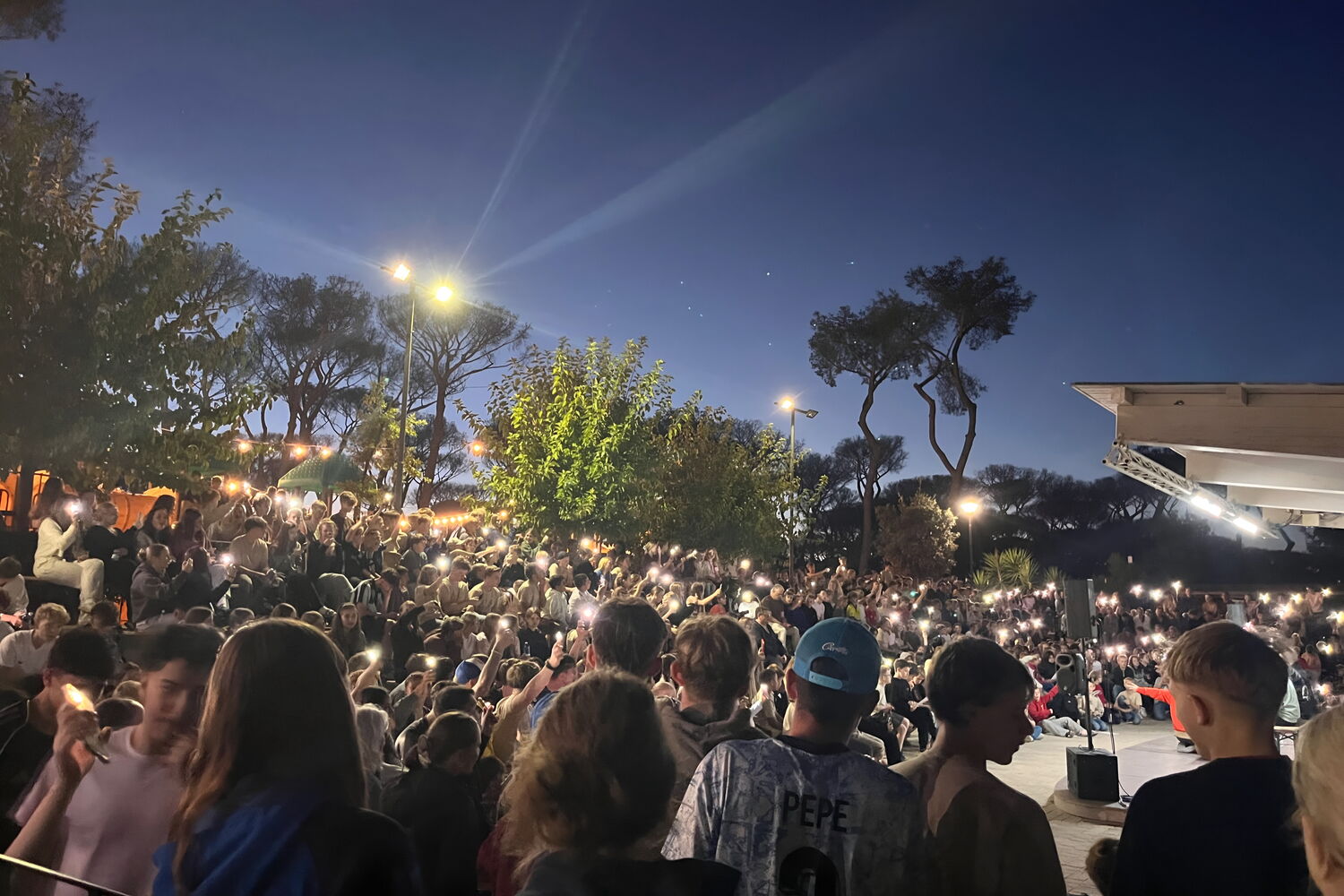 Am 3. Oktober war es dann so weit: Fast 1000 Schüler*innen versammelten sich mit uns Lehrkräften auf dem Parkplatz von XXXLutz (an dieser Stelle ein riesiges Dankeschön für die Parkplatzfreigabe!), und die Busse rollten gen Süden. Die Stimmung? Eine Mischung aus Klassenfahrt, Festival und der bangen Frage, ob wir wirklich alles bedacht hatten. Nach einer langen, aber erstaunlich harmonischen Fahrt, bei der die Fünft- und Sechstklässler*innen ihre Busse kurzerhand in rollende Diskotheken verwandelten, erreichten die ersten Busse die Campinganlage bei Rom gegen 15.00 Uhr. Auch die beiden Busse, deren Reifen einen kurzen Pitstop beschlossen hatten, kamen sicher am Ziel an.