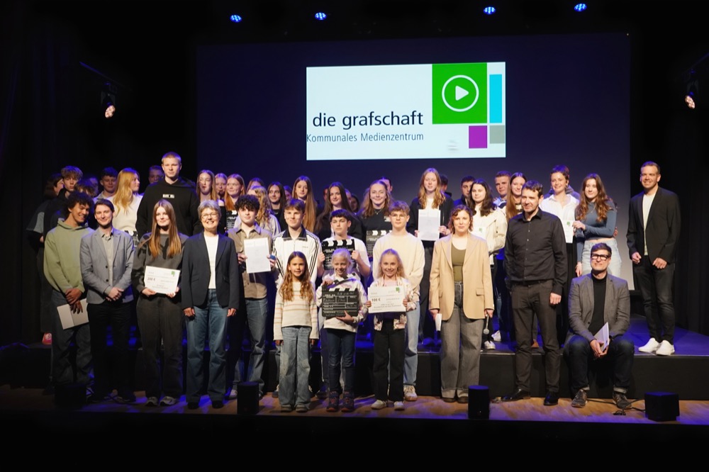 Am Freitag, den 25.04.2025 fand die jährliche Preisverleihung der Grafschafter Filmklappe zum ersten Mal im Capitol Nordhorn statt – ein sehr passender Ort für diesen Anlass. Die Jury bestand aus Gerlinde Schmidt-Hood (Niedersächsisches Institut für frühkindliche Bildung und Entwicklung), Dr. Thomas Niemeyer (Städtische Galerie Nordhorn), Tom Wolf (Kulturzentrum Komplex Schüttorf), Dr. Regina Göschl (Kulturmanagerin Landkreis) und Peter Scholz (Medienzentrum Landkreis Grafschaft Bentheim). Als Vertreter vom Landkreis für die Abteilung Schule, Bildung und Kultur war Thomas Kliemt zugegen. Laut Peter Scholz, dem Veranstaltungsleiter vom Kommunalen Medienzentrum, wurden auch in diesem Jahr mit 20 Filmen mit Blick auf den landesweiten Durchschnitt viele Beiträge eingereicht.