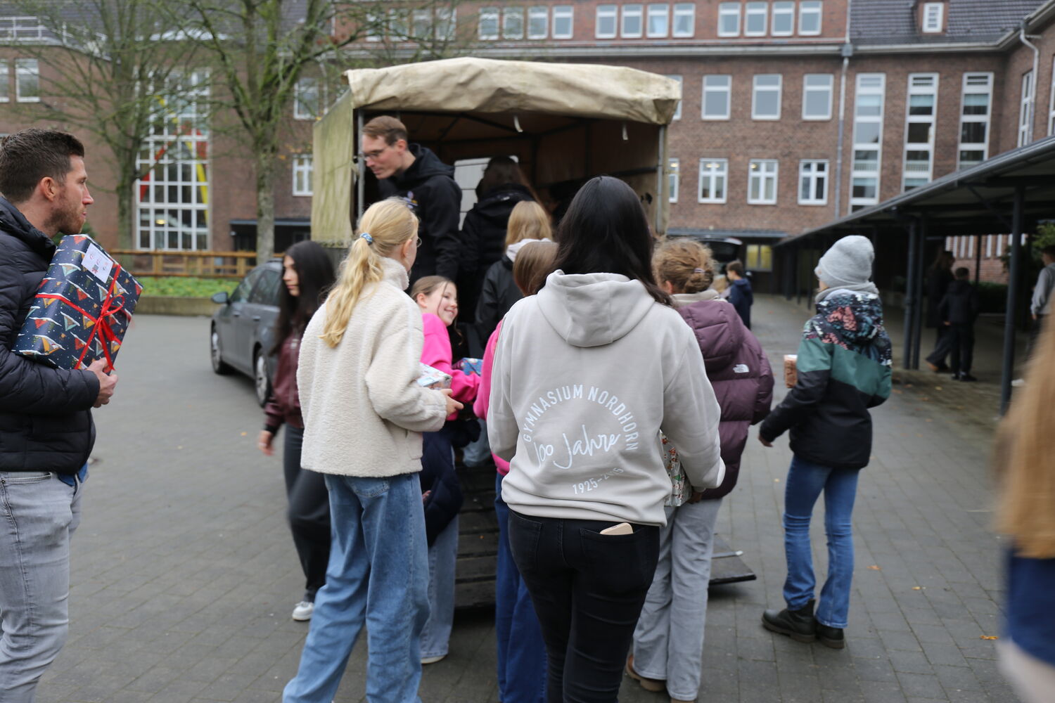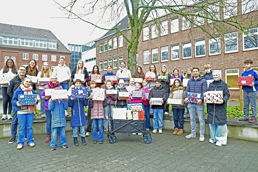 Unter der Leitung von Frau Mahendrarajah, Frau Scholten und Frau Willemsen und in Zusammenarbeit mit der Grundschule Am Roggenkamp, der Maria-Montessori-Schule und der Pestalozzischule haben wir auch in diesem Jahr gemeinsam wieder zahlreiche Weihnachtspäckchen für den Weihnachtspäckchenkonvoi gesammelt. Rund 250 liebevoll gepackte Geschenke wurden am 14. November 2025 übergeben und machen sich nun auf den Weg zu Kindern in Osteuropa. Ein herzliches Dankeschön an alle, die diese Aktion unterstützt haben!